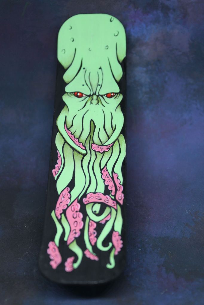 I saw down with the Great Bearded One and we were brainstorming for my giant monster entries this year. I knew I wanted to do nyarlothotep, but I wasn’t sure how I wanted to do it. After saying nyarlothotep about 83 times, we started shortening it to Gnarly. And when I think of gnarly, I think of skateboards. The rest is history. π
