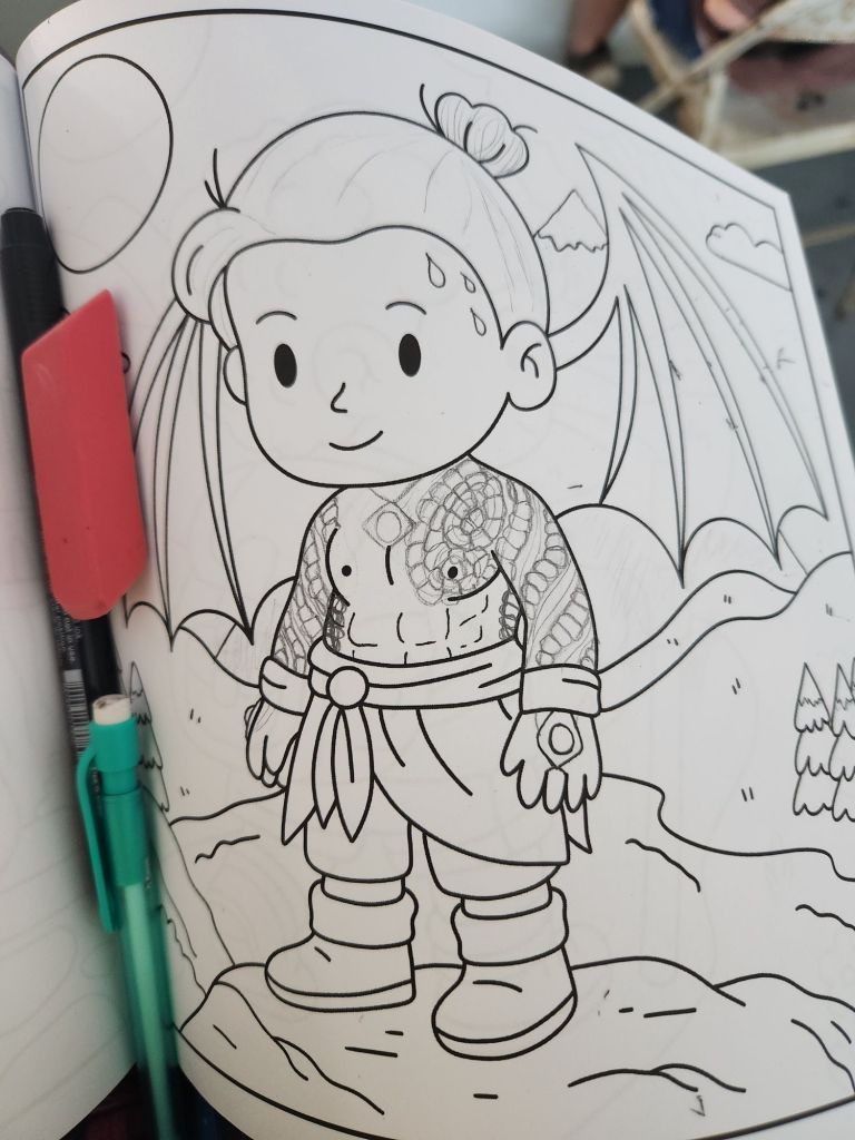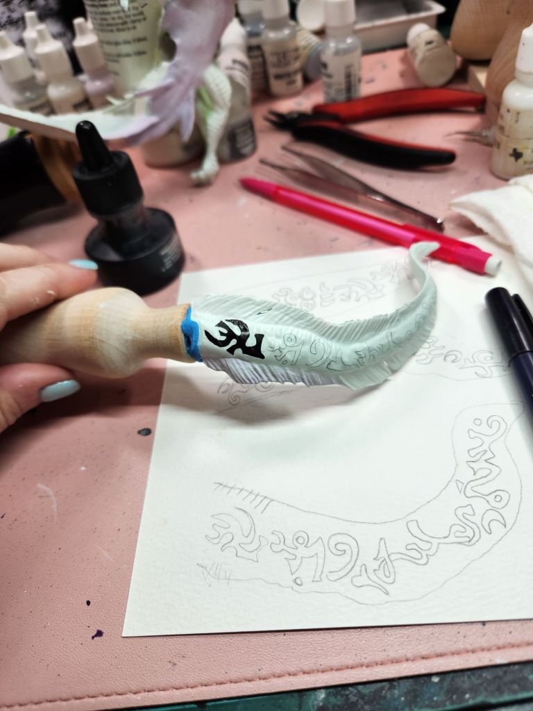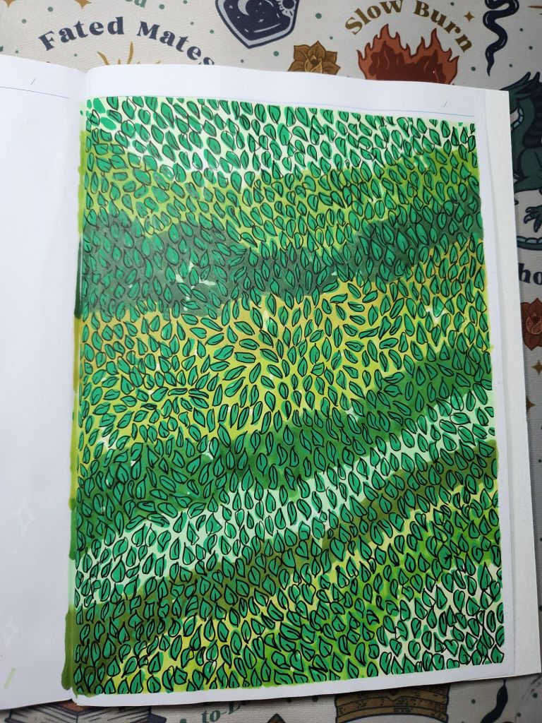 Then I started looking at his 3 (three!) amazing tails. I decided to stick with just the one color and add black runes down his tail. I never loved the way the tail bubbles are, so I just decided to go over them. lol I tried something else at first, but I didn’t like it and I really wanted to fill him with some cool freehand.