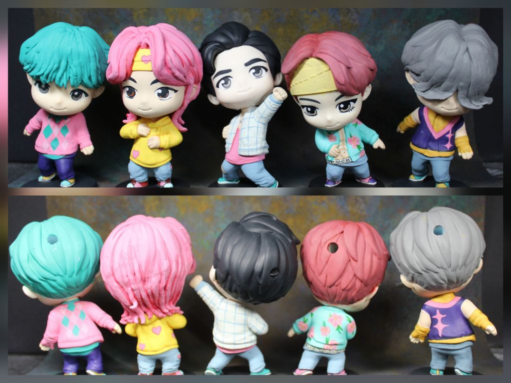 I don’t know if you have small children or have been deep in the trenches of kpop demon hunters, but we have! I think we’ve listened to the soundtrack approximately 1 million times and watch the movie at least that many. The boys love it, and it’s so catchy I don’t have any problem with it. Lol. At the same time, McDonald’s put out these BTS toys. So we’ve been collecting them so that I could paint them as the Saja boys. It took a little bit of sculpting and some painting time, but I think that I have managed to achieve it!