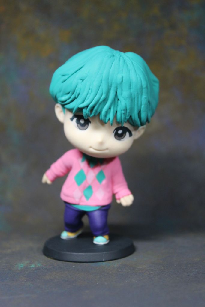 Note: these are for my children so I did not paint them to any standard that is crazy high because they are going to get destroyed. I only sculpted the hair because there was no way to make them look like the specific characters from Saja Boys without doing that. Without further ado! Here are my McDonald’s Saja boys. Meet Jinu, Romance, Abby, Mystery, and Baby Saja!