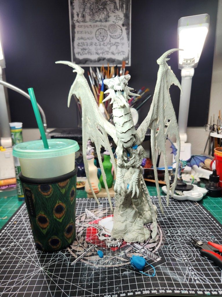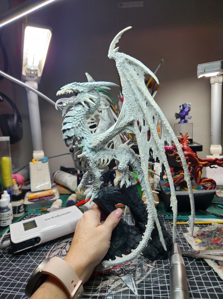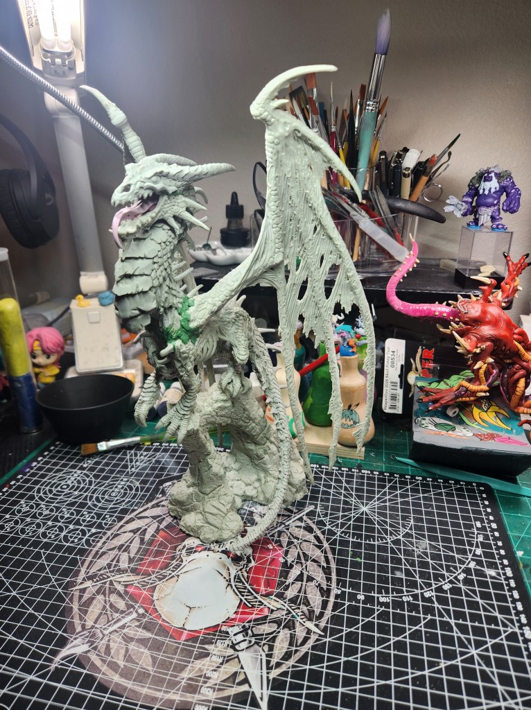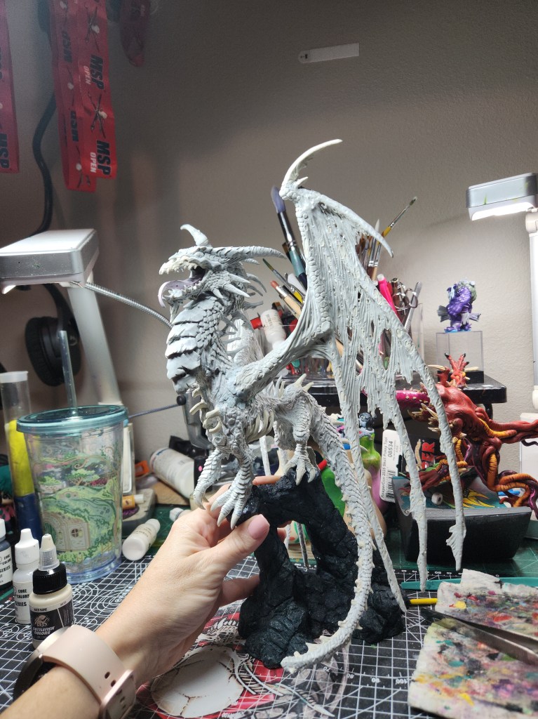 I haven’t painted a ton of dragons, but I figure he’s a giant monster, so I should just go for it. ( Just FYI, since he is not the Production Model, but a special resin cast, he will not be eligible for manufacturer’s awards like a Sophie trophy or the Giant Monster award. So, I will have to paint other giant monsters for Reapercon. ๐ )
