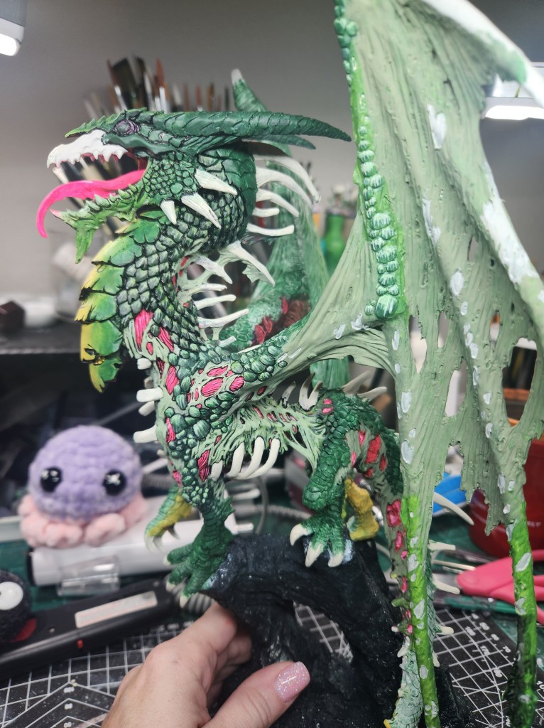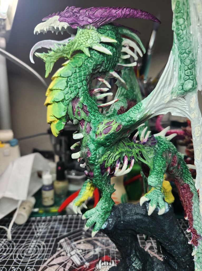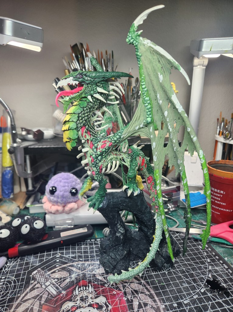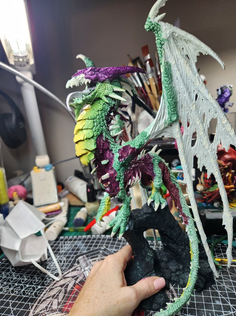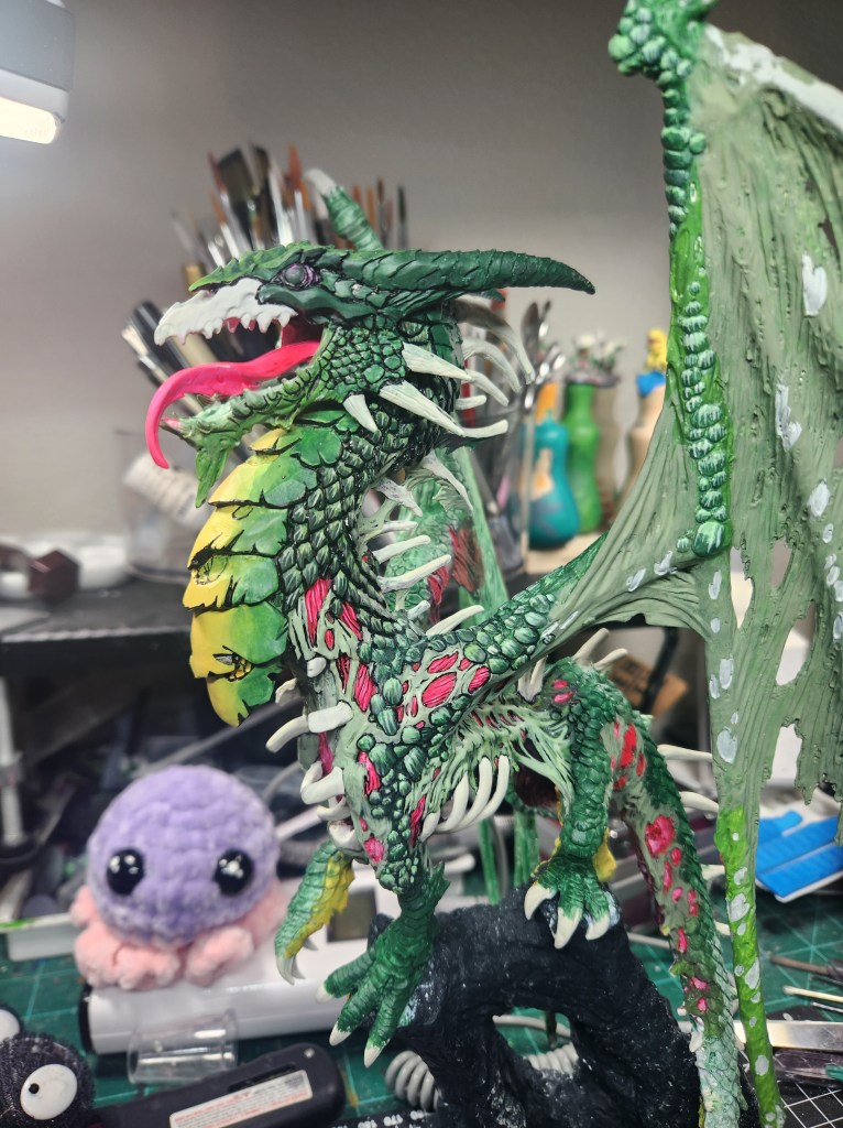 I haven’t painted a ton of dragons, but I figure he’s a giant monster, so I should just go for it. ( Just FYI, since he is not the Production Model, but a special resin cast, he will not be eligible for manufacturer’s awards like a Sophie trophy or the Giant Monster award. So, I will have to paint other giant monsters for Reapercon. ๐ )